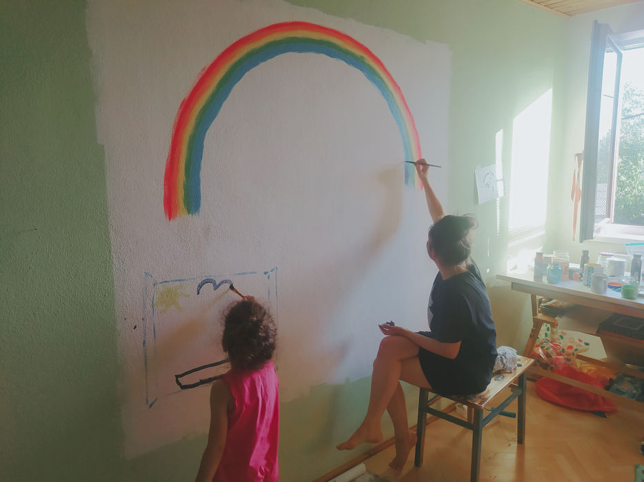 Materials: wall paint, acrylic spray, glitters